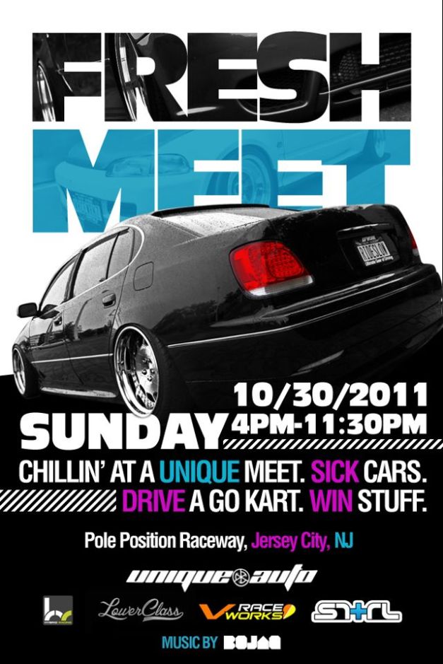 So a Fresh Meet is scheduled for tomorrow, sunday 10/30 at 4pm. Although with this ridiculous snow it’s looking less and less likely. Lets all hope for the best because this meet is supposed to be REALLY big. We are giving out lots of prizes, have live music, RC drifting, TONS of show cars, and discounts on go-cart racing. The event is free which is a huge plus and we are holding these events simply to give back to the community. We are all car enthusiasts. That’s all that should matter. So come out tomorrow for a great time! Pole Position Jersey City. Be there!