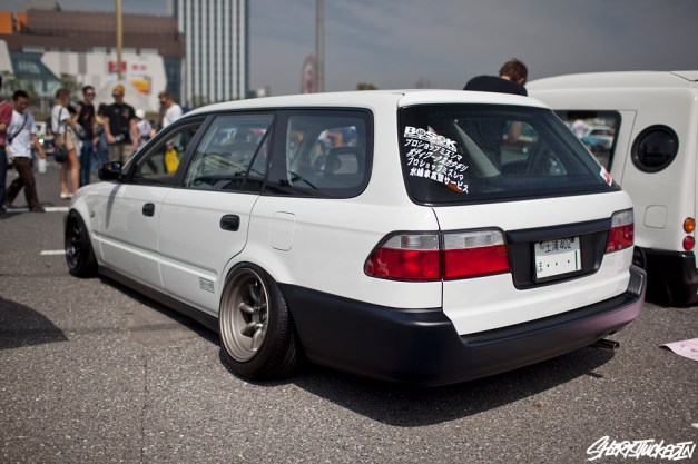 Every now and then I come across a car I’ve never seen before. Found one recently in the shirtstuckedin.com blog and thought I would share with you guys. I’m sure all the hard core JDM heads will know this one but lets see what you guys come up with. I think it’s a great looking Honda wagon sitting so pretty on a classic set of Wat’s. Soooo, what is it?!