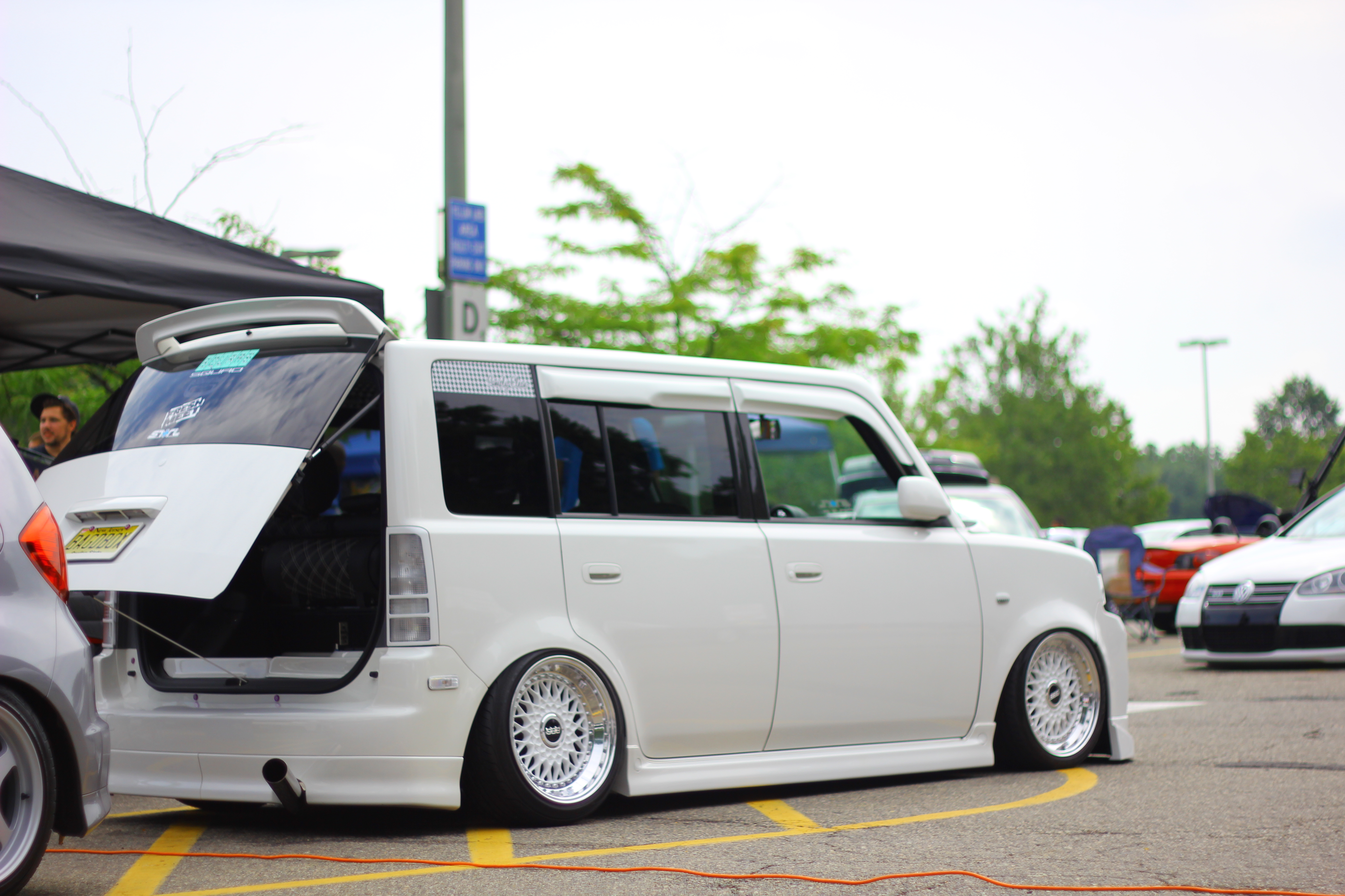Right next to the DJ was Mike’s beautifully built Scion sitting aired out on BBS RS’.