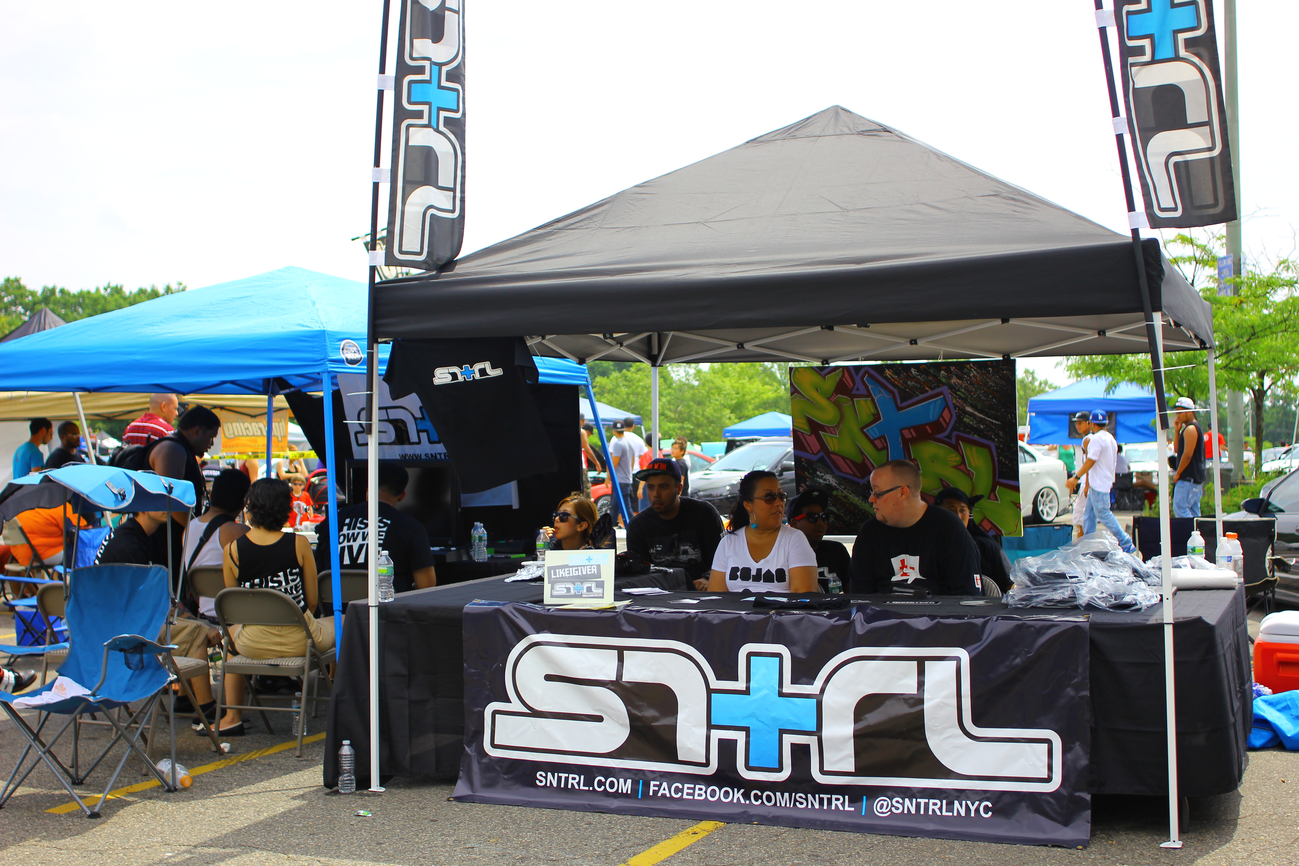 The one and only SNTRL team camped up in the shade, and showing some new products.