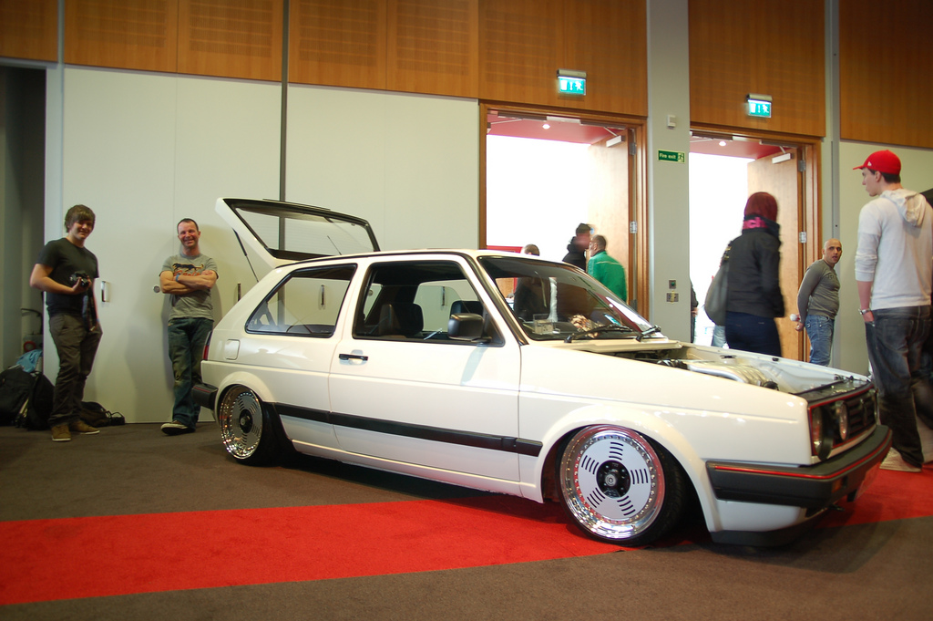 One of the most recognizable volkswagen’s to the enthusiast is usually the MK2. With classic body lines, numerous motor swap possibilities, and looking good on a ton of wheels, no wonder it’s so popular. With my brother trying to restore his own, I’ve been noticing parts are gettting harder and harder to find. I guess that just comes with a car that is so old. Anyways I came across this small bumper MK2 and thought it looked damn good. Not too sure if I would rock all white RS’ but they still do look good.