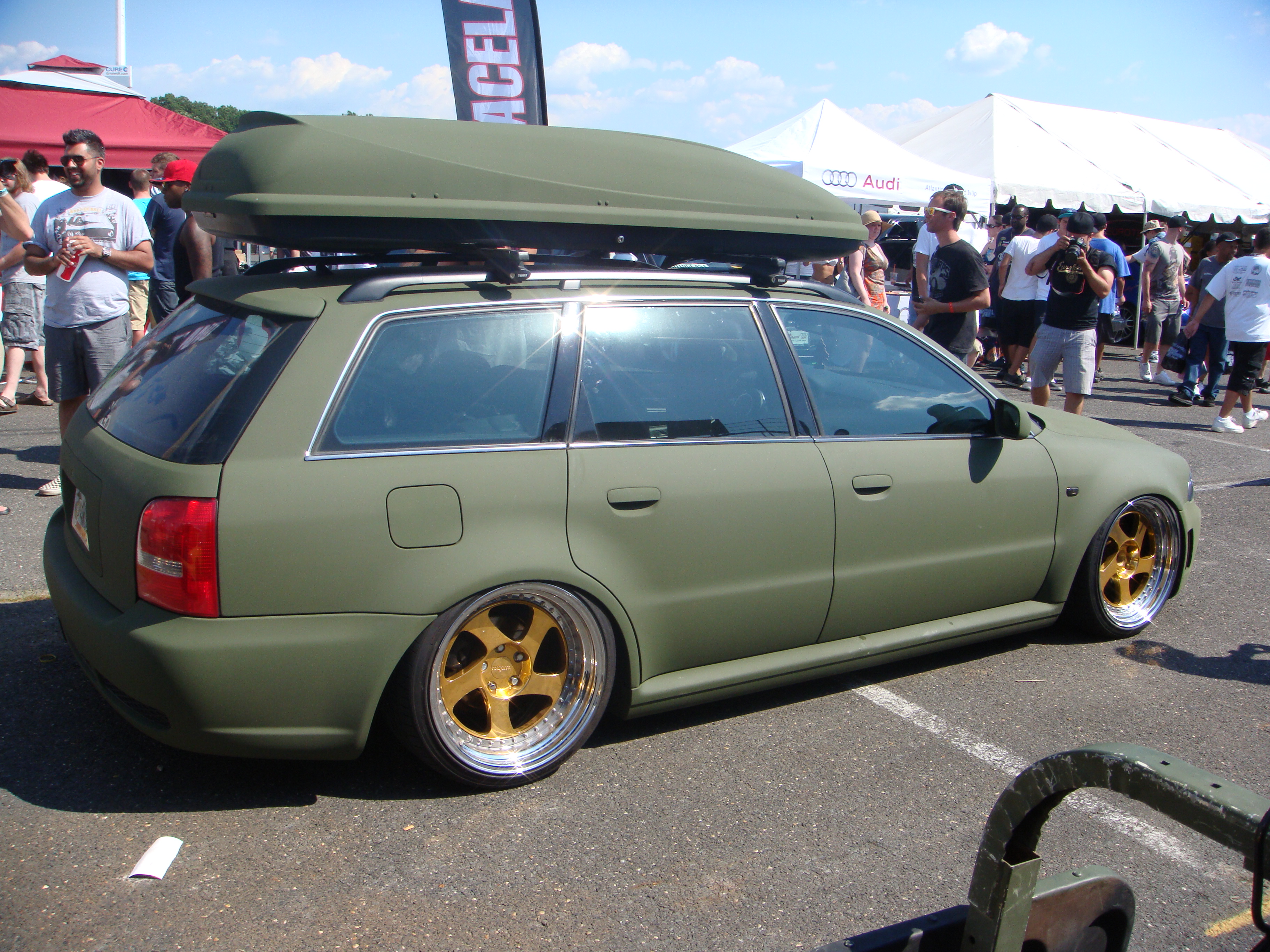 The infamous flat green S4 wagon now of baller Rotiforms and air ride. Gotta love the color match.